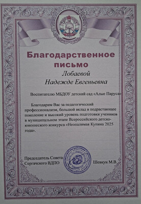 Персональный сайт воспитателя Лобаевой Надежды Евгеньевны