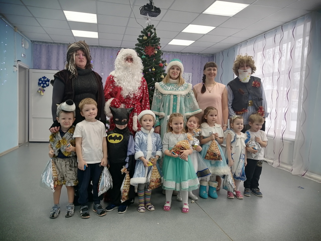 В гости к детям приходил Дед Мороз со Снегурочкой,а так же были Баба Яга и Леший.Дети Пели,танцевали и рассказывали стихи,а в конце праздники, Сказочные герои подарили сладкие подарки!!!